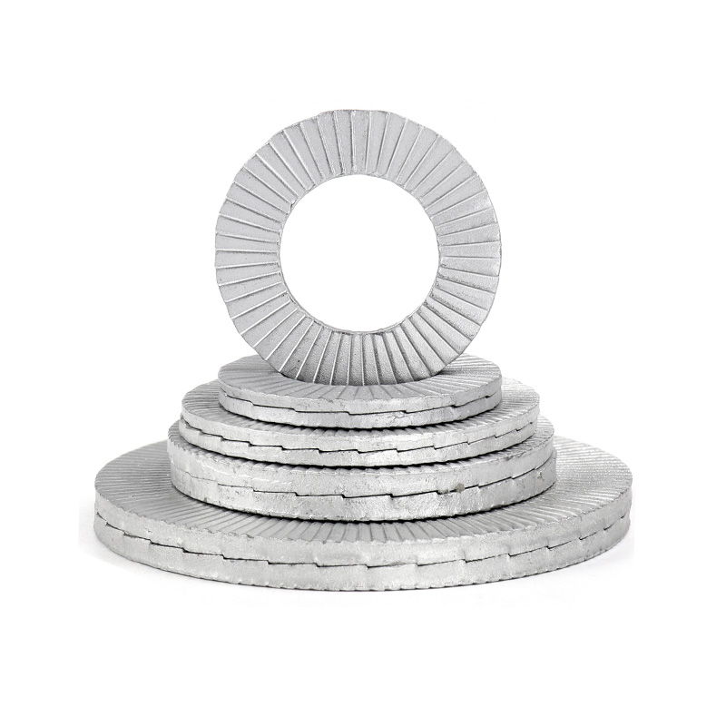 法士威企業制造的DIN25201碳鋼雙疊自鎖墊圈,采用當前先進的防腐涂覆工藝,鋅鋁涂層達克羅表面處理+三涂三烘+有機面涂表面固化,是目前世界上普遍公認的新型金屬表面外理技術。此項技術已應用于風電,光伏電力系統,通訊系統,汽車工業業,鐵路系統,石化設備,船舶工業,建筑程機械等領域。比如:高強度螺栓,電力緊固件,鐵路聲風屏障非標準金屬件,地鐵觸網零件,建筑五金,道釘,鐵路扣件,風電,高速公路護欄,海事裝備,錨鏈等廣泛應用與普及。防腐蝕性能優越!