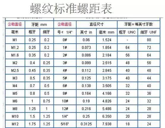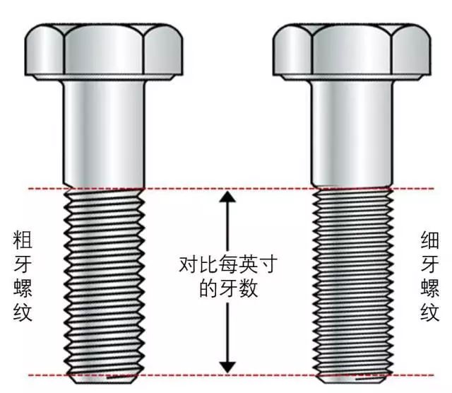 試問精細到何種程度的螺紋可以稱為細牙螺紋?我們不妨這樣來定義,所謂粗牙螺紋,可以定義為標準螺紋;而細牙螺紋是相對粗牙而言的,在同一公稱直徑下,每英寸所含的牙數不同,也就是螺距不同,粗牙螺距大,而細牙螺距小。也就是說,對于1/2-13和1/2-20兩種規格來說,前者就是粗牙而后者就是細牙。因此表示為1/2-13UNC和1/2-20UNF。
