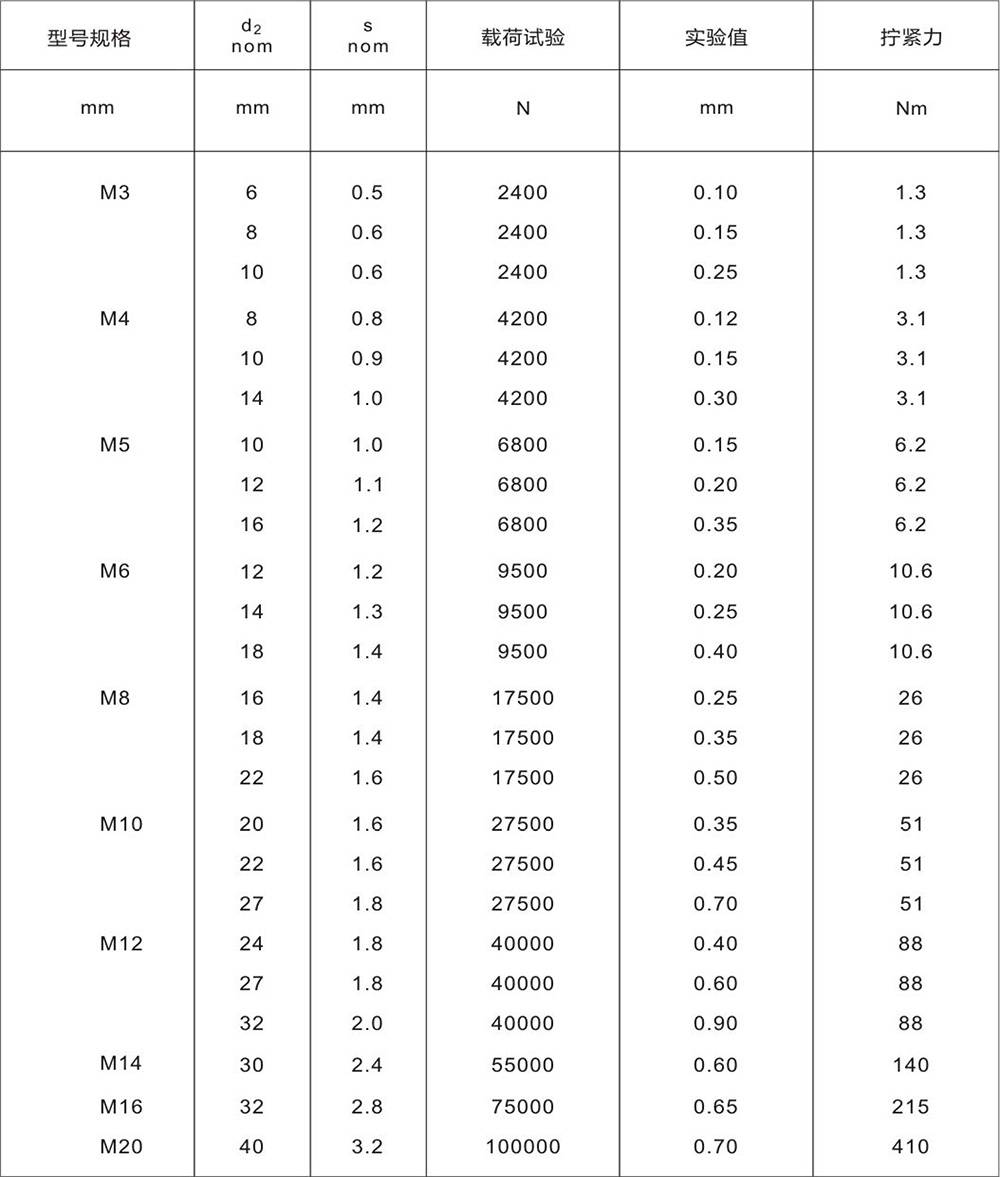常用規格:M3,M4,M5,M6,M8,M10,M12,M14,M16,M18,M20等。