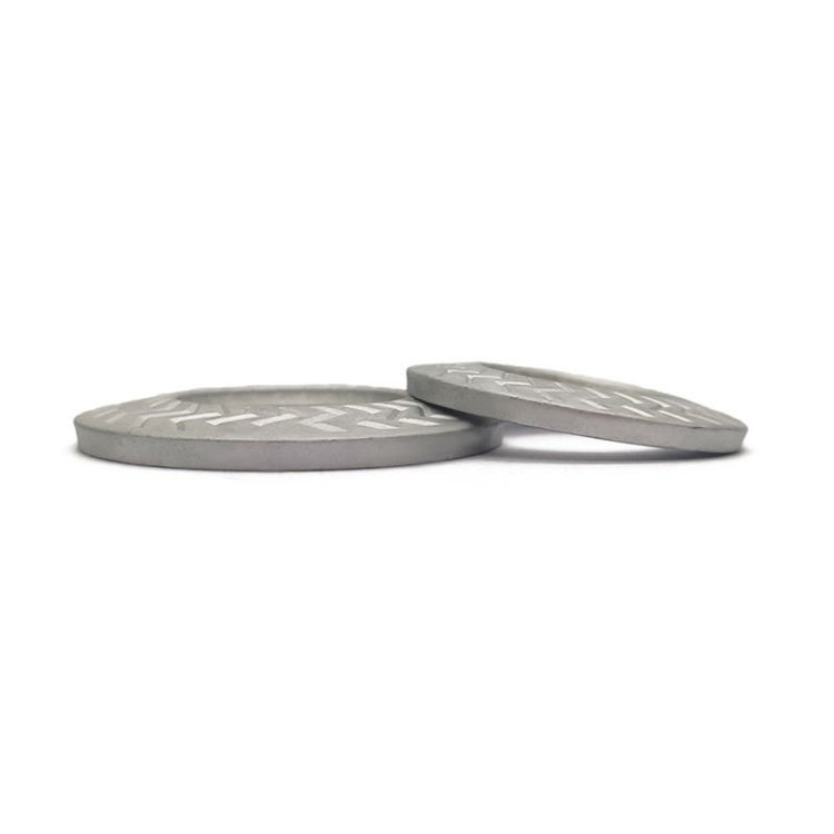 SKM滾花碟形墊圈預緊力防松效果比碟形墊圈要好、在歐洲鐵路機車領域被大量采用、表面齒紋增加了防松系數!目前齒紋設計有多種、根據墊圈接觸面尺寸不同齒紋也會有變化!