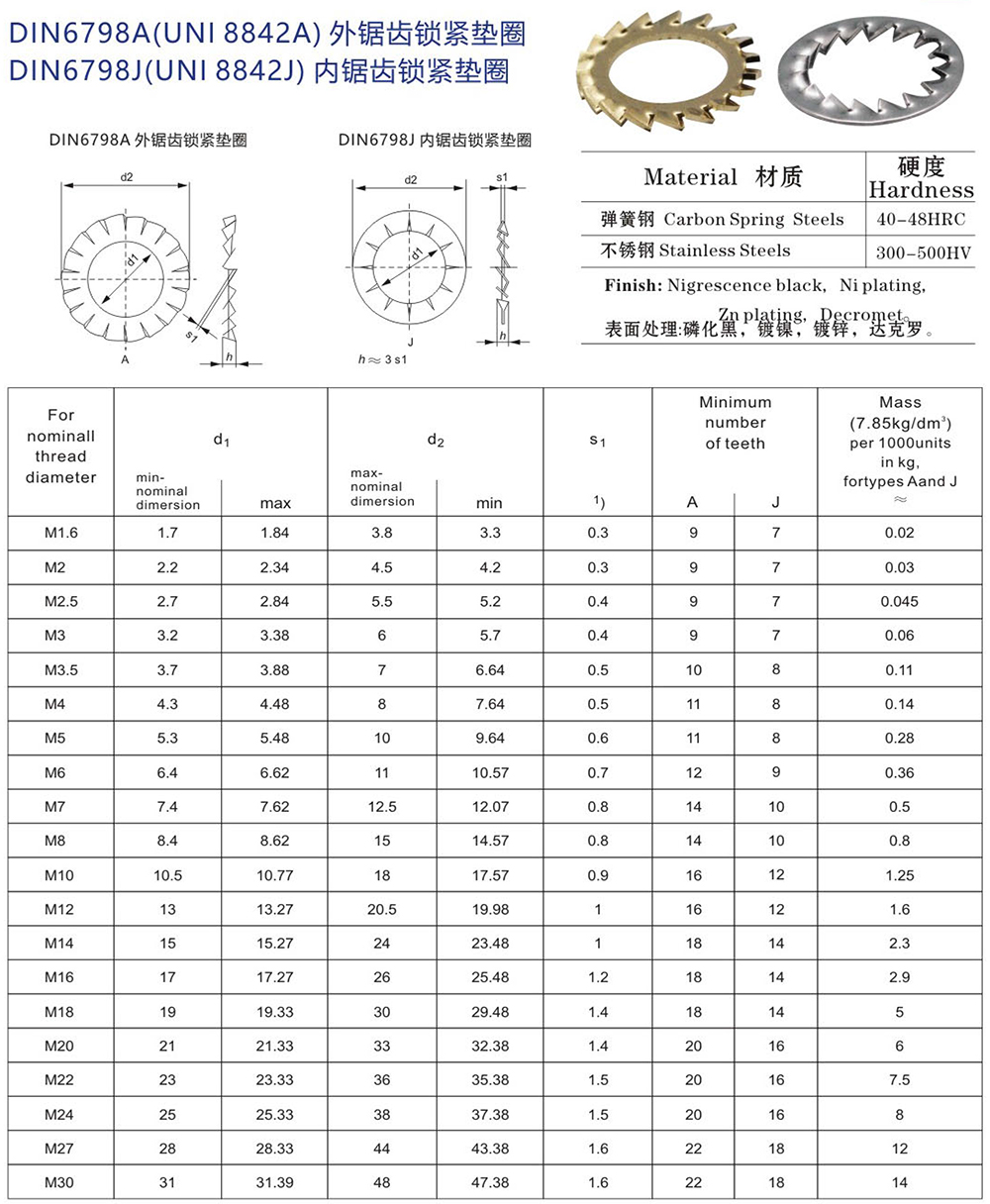 名稱:不銹鋼內外鋸齒鎖緊墊圈 DIN6798A DIN6798J