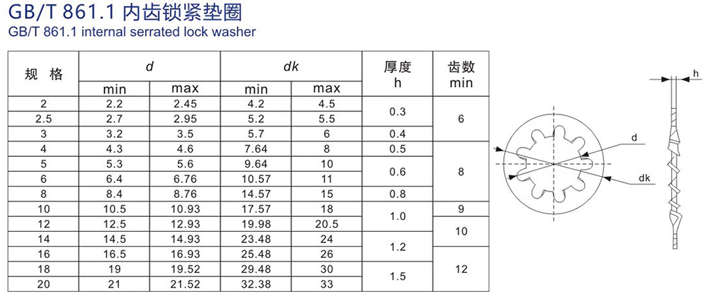 名稱:內(nèi)齒鎖緊墊圈 GB/T 861.1