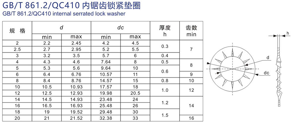 內鋸齒鎖緊墊圈 GB/T 861.2 QC410 - 內齒防...
