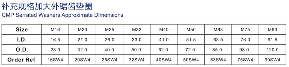 外鋸齒鎖緊墊圈是用在小件上起彈簧作用的,其尺寸與和其一起配合使用三維板材沖壓件的緊固螺釘,自攻螺紋螺釘的大小差不多,鋸齒墊圈主要用于螺栓的防松。