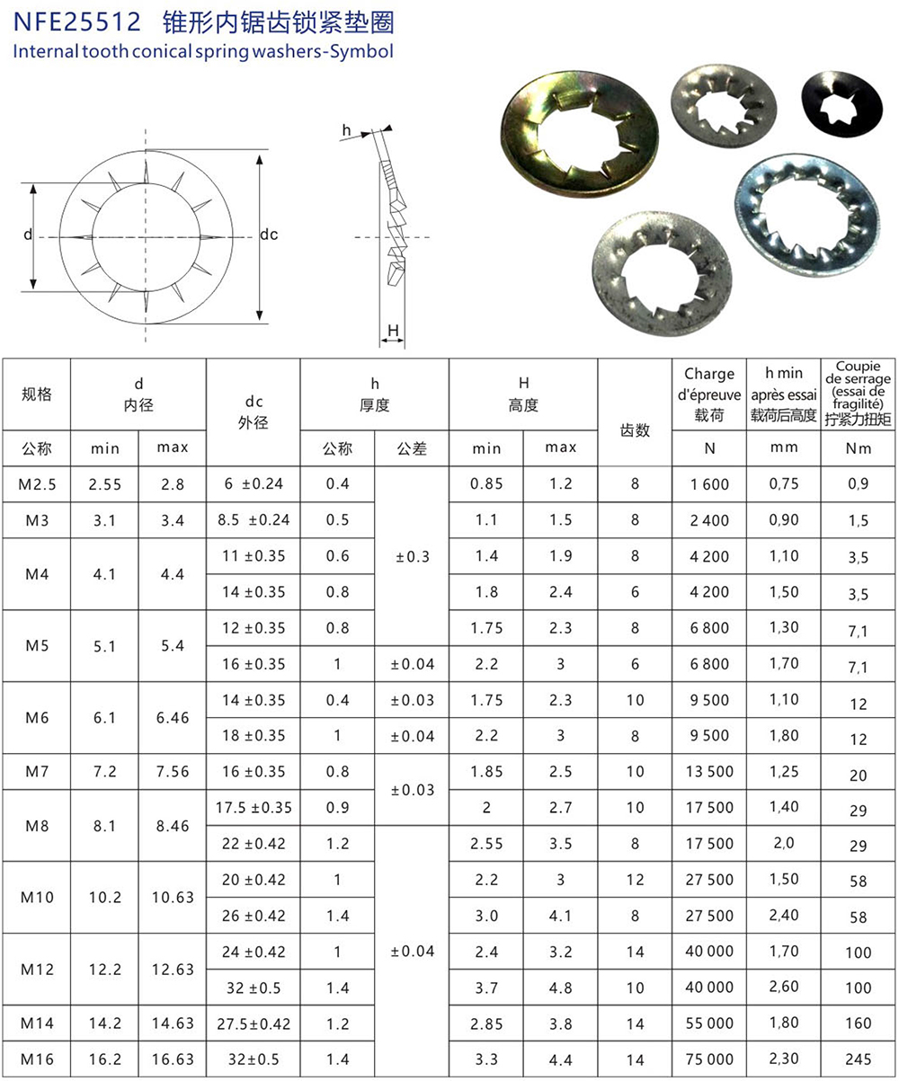 內(nèi)齒錐形彈簧墊圈 NFE25512-內(nèi)鋸齒鎖緊墊圈