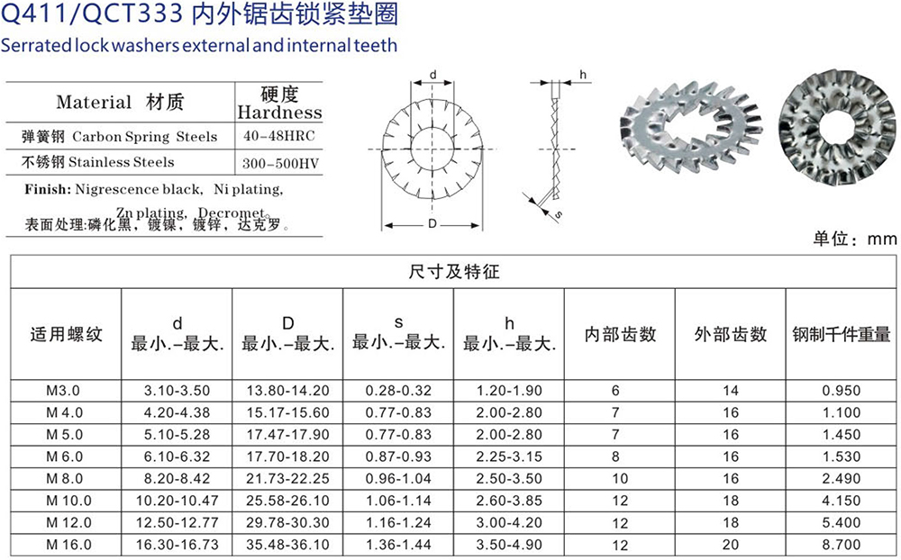 名稱:內外鋸齒鎖緊墊圈 Q411/QCT333